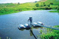 Pontoon floats are just one option available for pumps or stirrers on ponds. Mainly used for short shaft pressure pumps which are required to be in the fluid (non self priming). The pontoon needs to be stable, balanced and have good and safe access. Each system is designed to purpose and a recommendation is made on the type of pump used and stirrer as part of the system. Has your pond Danger warning signs?, Emergency exit?, rope ladder? Fence? Is your pond FDE compliant, permeability tested? Note department of labour new regulations are in place from May 2012